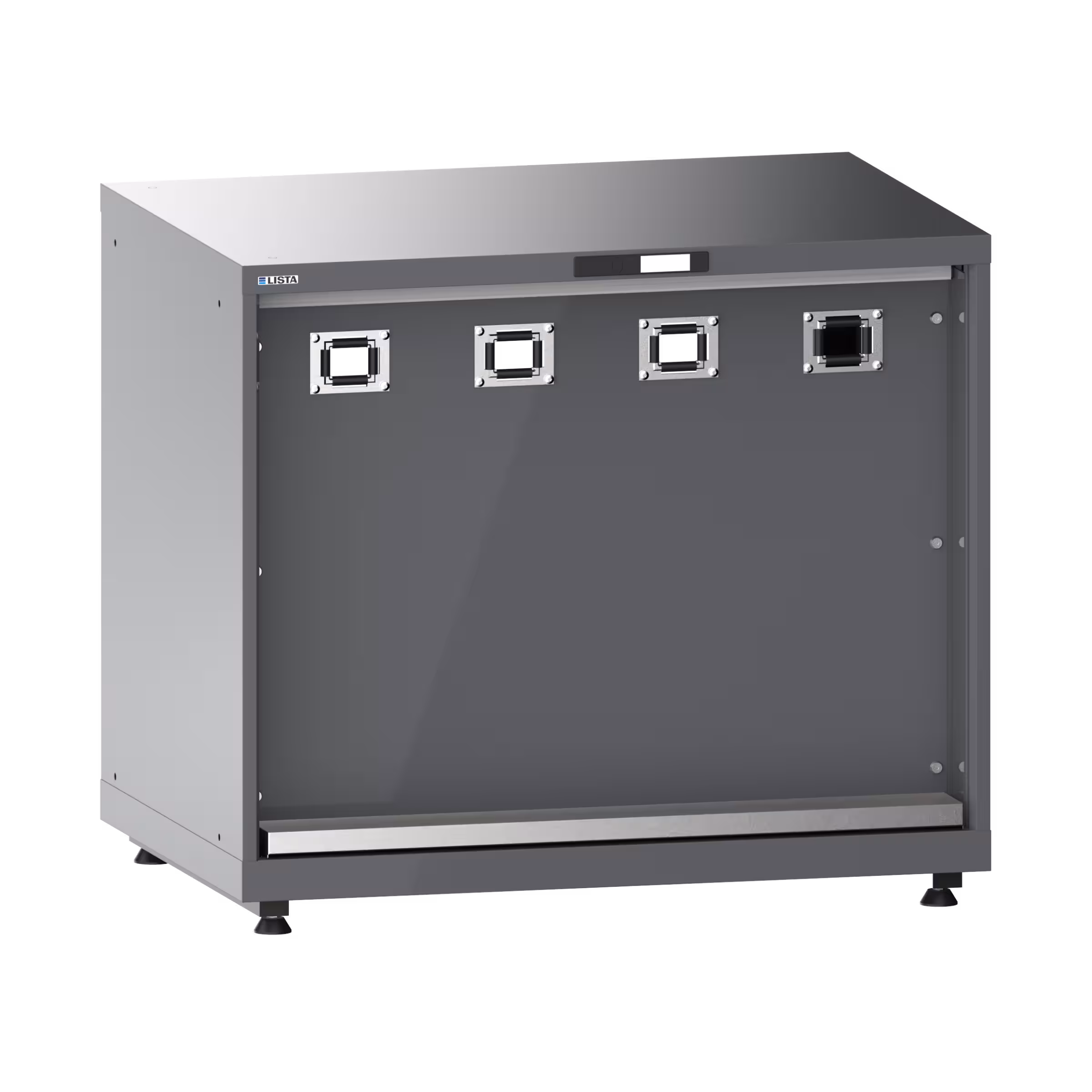 Medienversorgungsschrank 54x36E (BxTxH) 1023x725x895-940mm 4 x Schlauchtor/1 x Tropfwanne inkl. Nivellierfuss-Set für Blenden (4 x Füsse, 45-90mm) und Montagesatz Grau metallic NCS S 6502-B