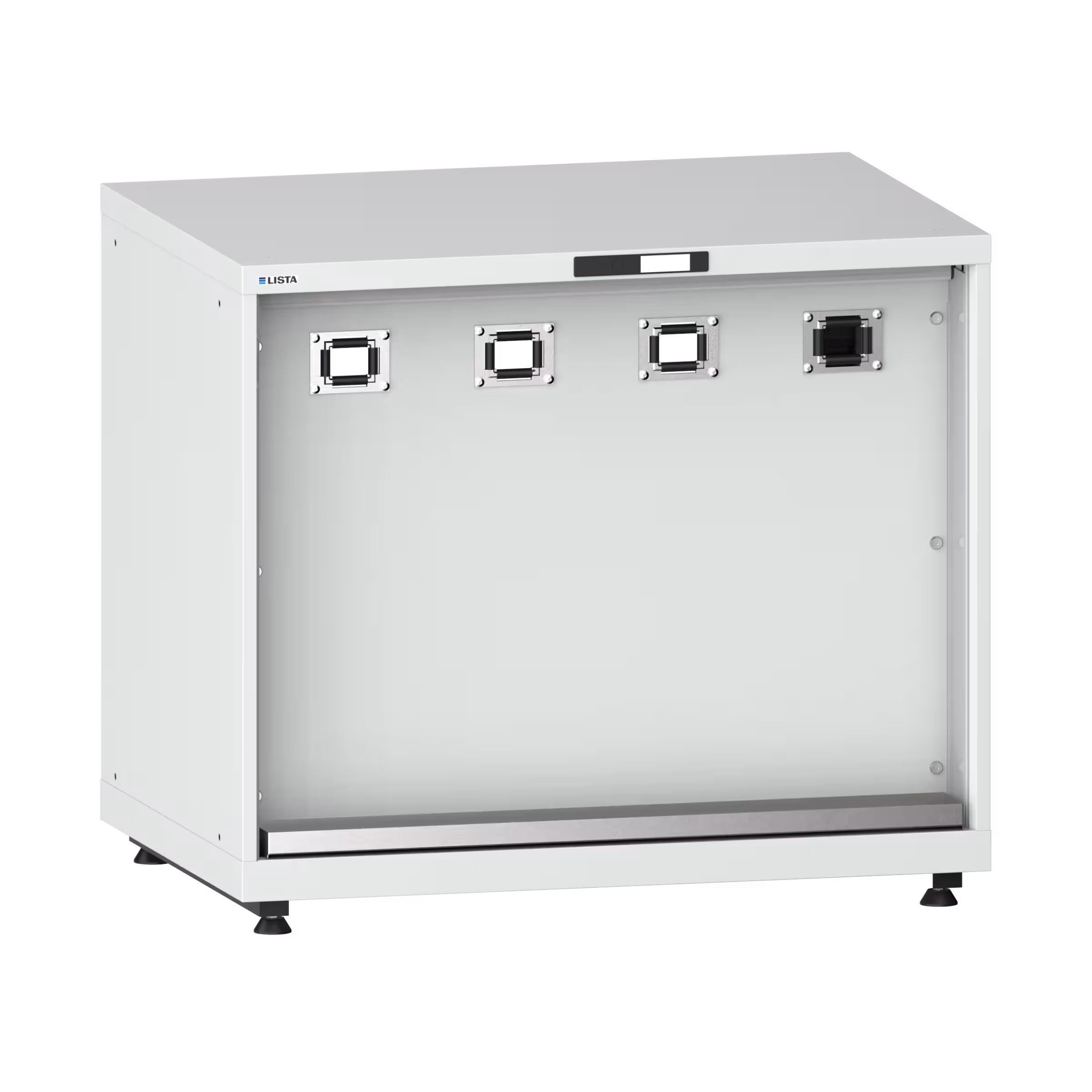 Medienversorgungsschrank 54x36E (BxTxH) 1023x725x895-940mm 4 x Schlauchtor/1 x Tropfwanne inkl. Nivellierfuss-Set für Blenden (4 x Füsse, 45-90mm) und Montagesatz Hellgrau NCS S 2000-N