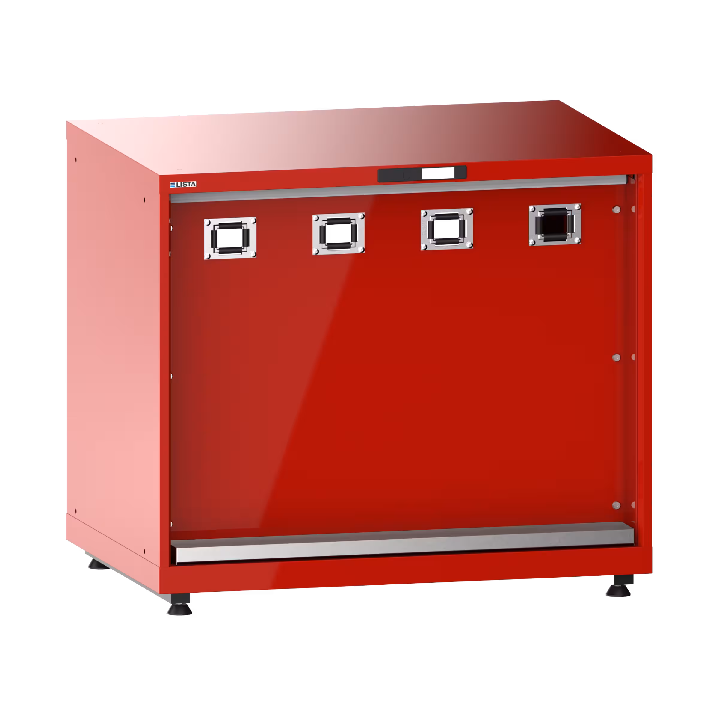 Armoire d’alimentation 54x36E (LxPxH) 1023x725x895-940mm 4 x accès pour flexibles/1 x bac de rétention avec kit de pieds de mise à niveau pour caches (4 x pieds, 45-90mm) et set de montage Rouge feu RAL 3000