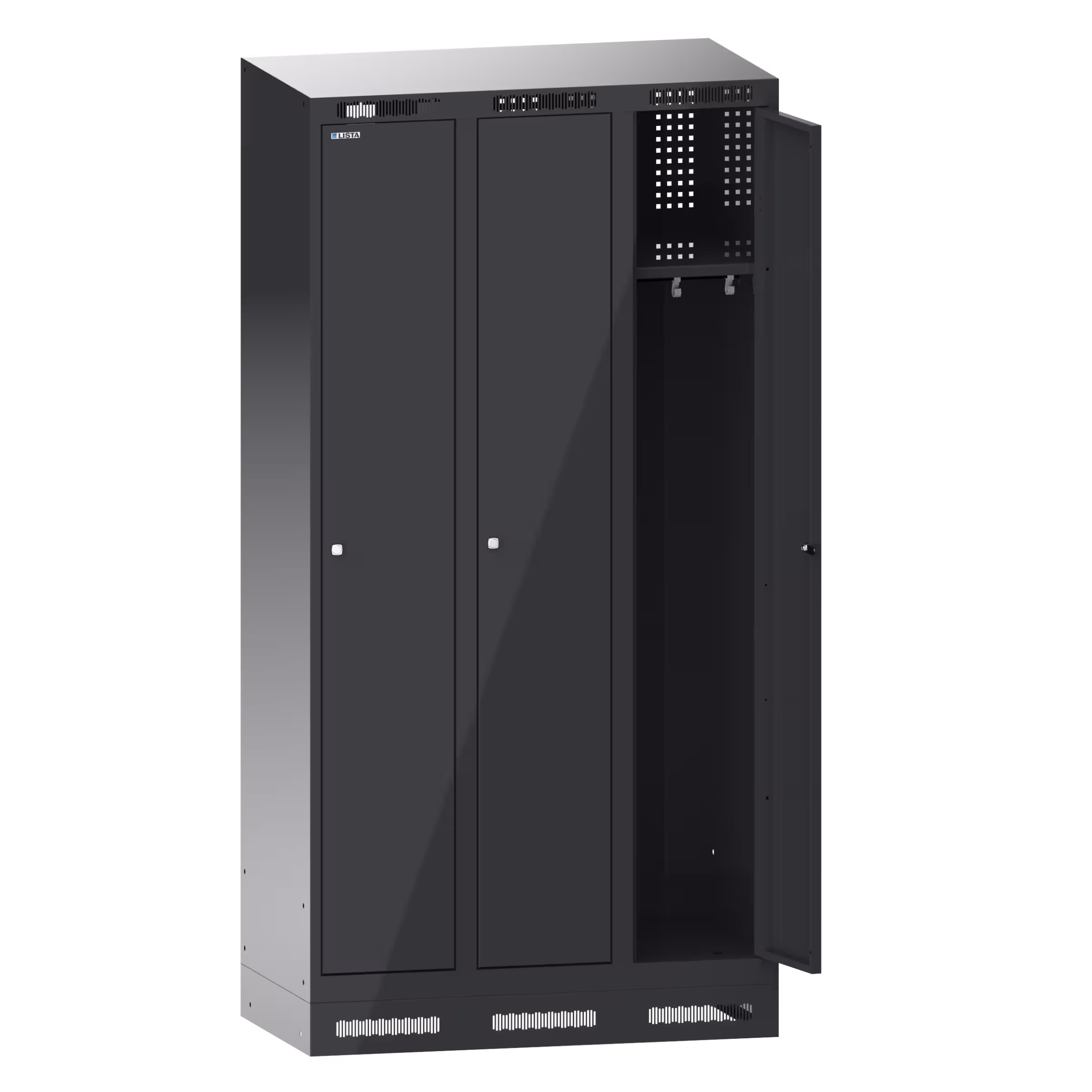 Armoire-vestiaire de charge de batterie (LxPxH) 900x585x1800mm 3 compartiments avec socle, porte lisse Type D/Schuko 2x230V KEY Lock Gris anthracite RAL 7016