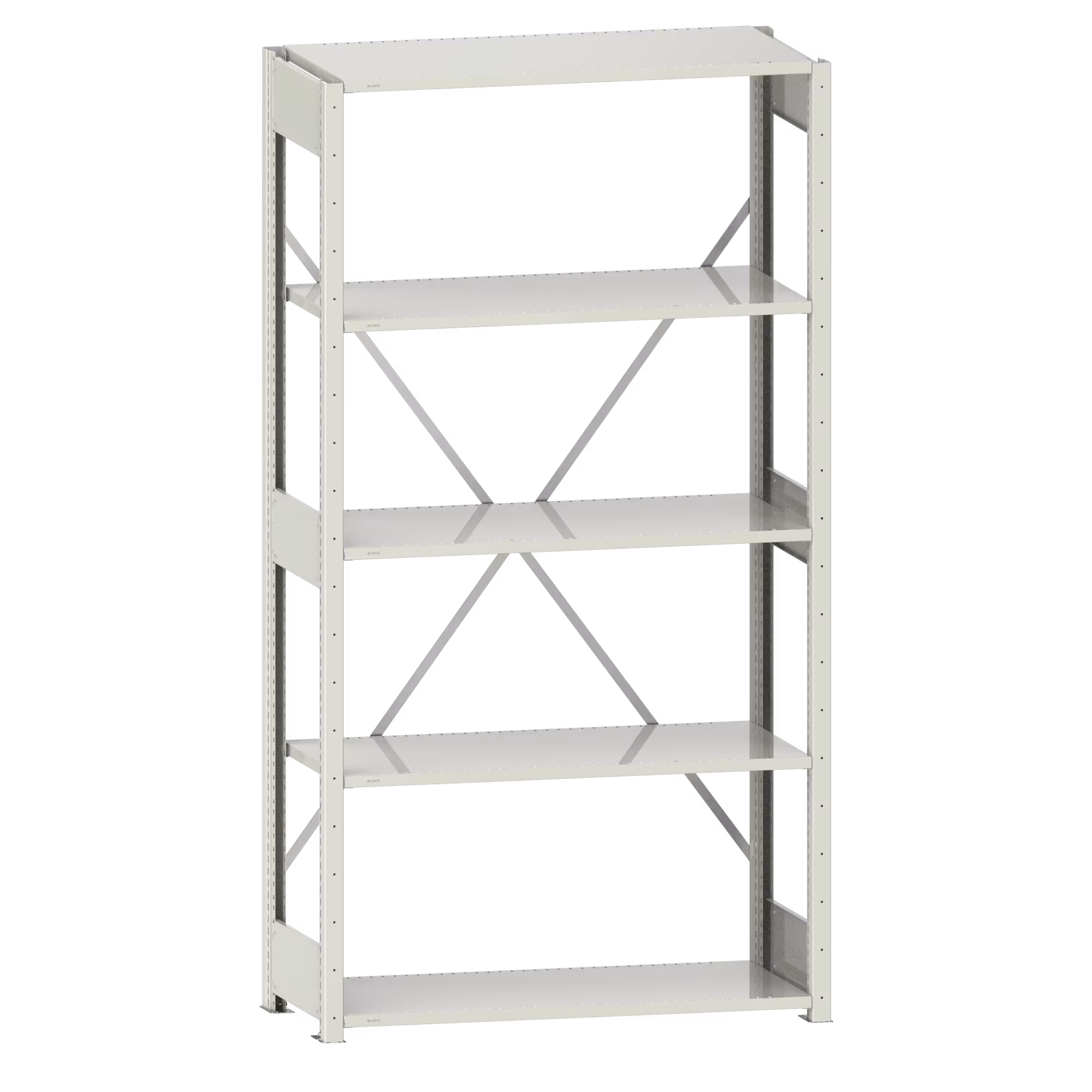 Rayonnage universel L1006 unité de base (LxPxH) 1300x500x2200mm 5 rayons à fentes (220kg) Blanc gris RAL 9002