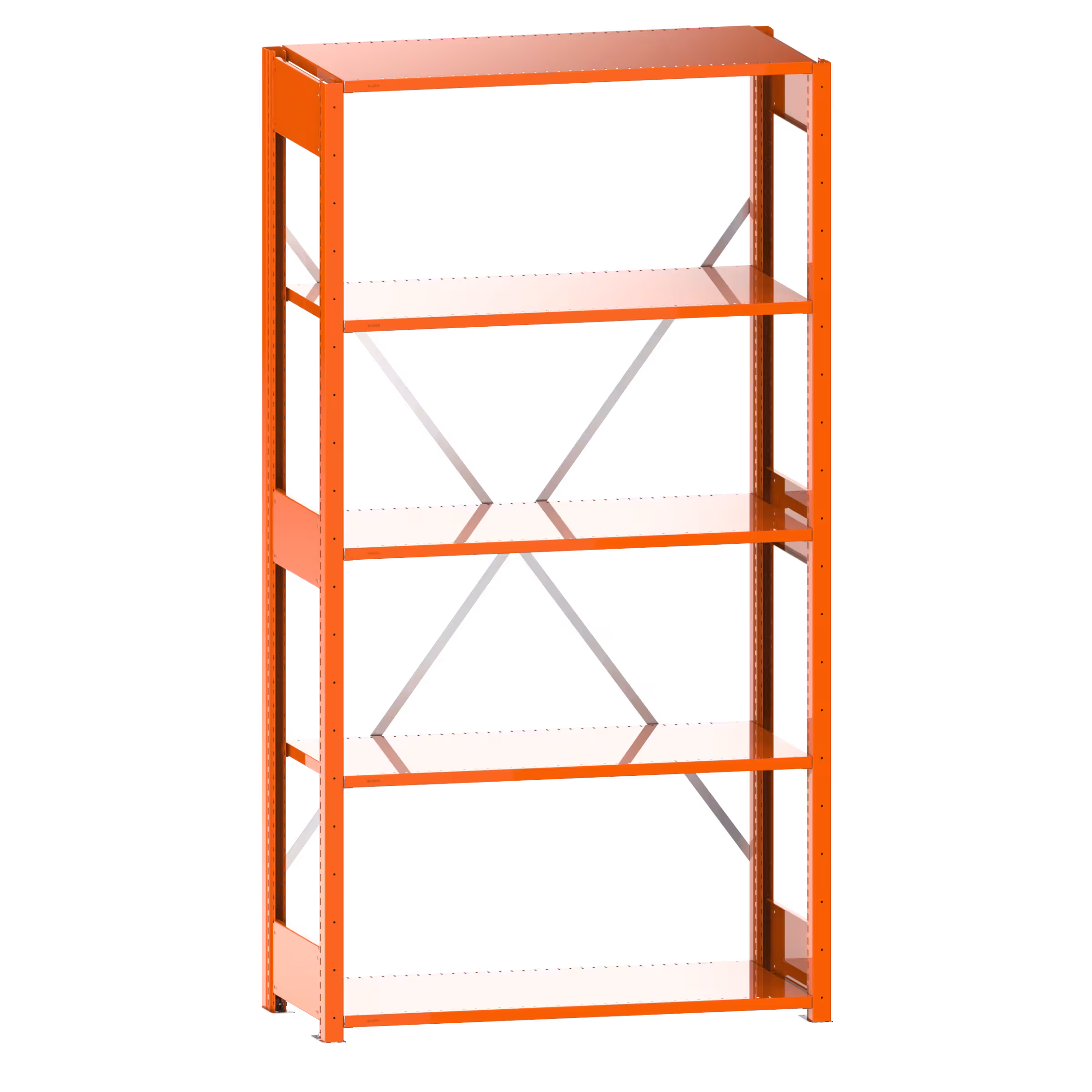Rayonnage universel L1006 unité de base (LxPxH) 1300x500x2200mm 5 rayons à fentes (220kg) Orange RAL 2004